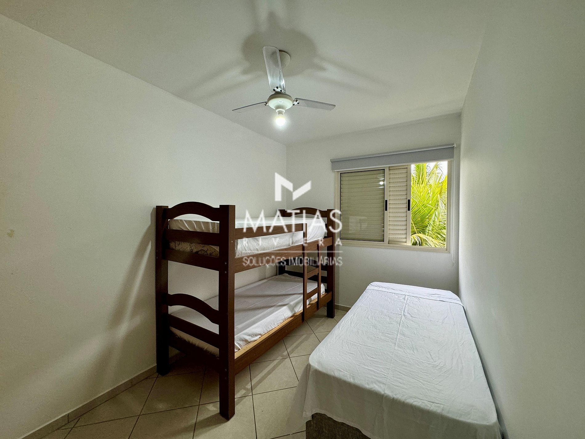 1 Dormitório com Beliche e Cama de Solteiro + Colchão Extra, com ventilador de Teto